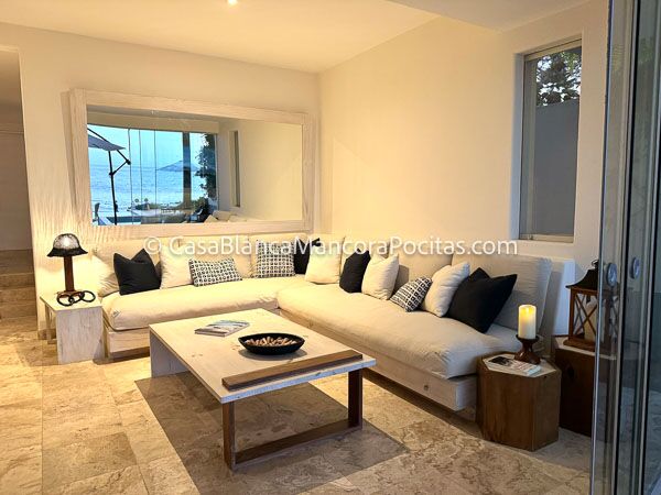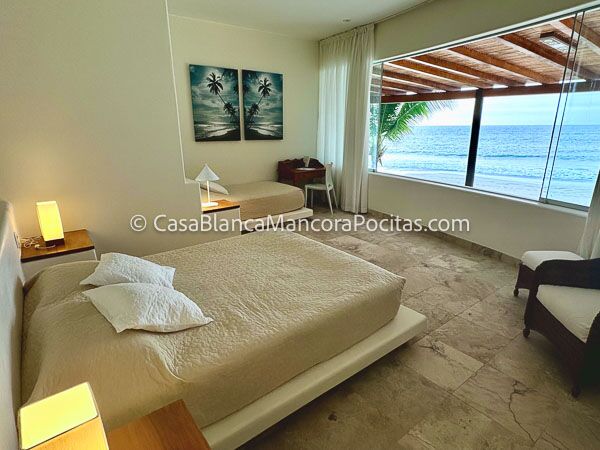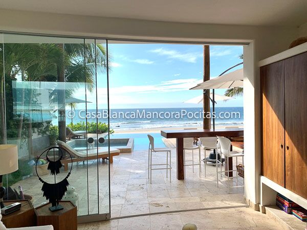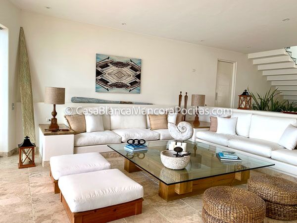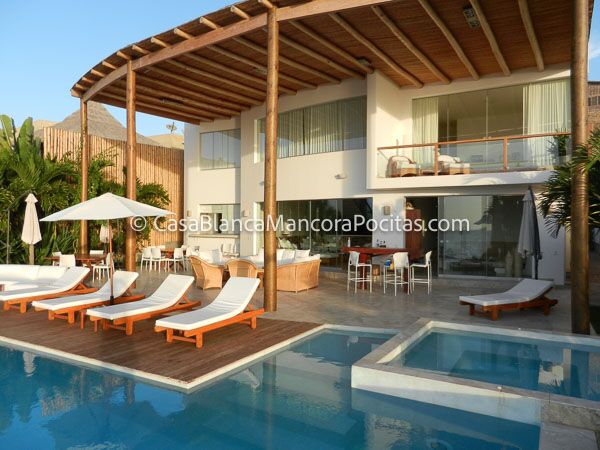 Casa Blanca Beach Front se ubica a orillas del mar, en primera fila en una de las mejores zonas de playa Las Pocitas, Máncora, a pocos pasos del hotel Kichic.