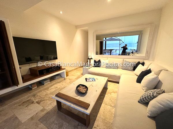 El área social interior cuenta con una sala principal, sala de TV, ambas con vista al mar, además de un baño de visitas.