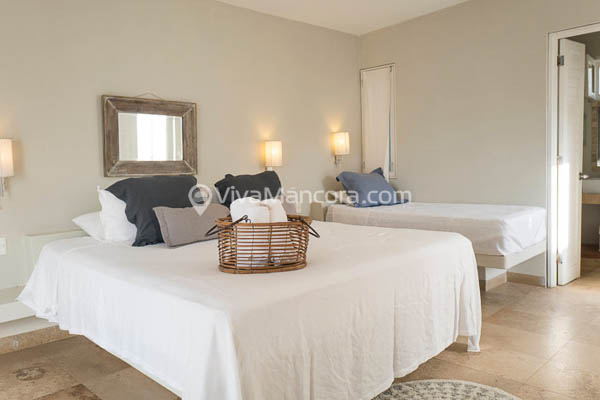 Dos habitaciones en segundo piso, terraza privada y vista al mar, cada una con cama King y una cama de una plaza (hasta para 3 personas por habitación).